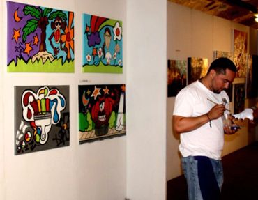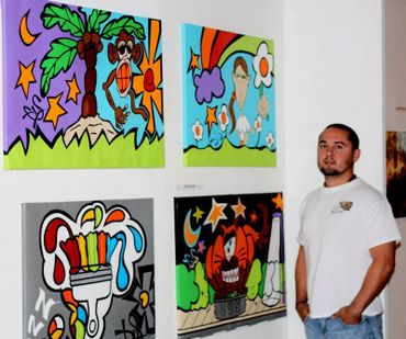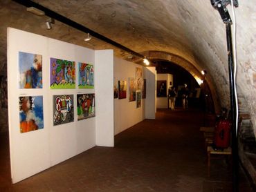 Taking place in the magnificent Castello Estense in Ferrara, Italy. Built in 1385 this classical structure made for the perfect setting to exhibit GusColors modern artwork, creating a contrast between the older structures and his colorful pop art.